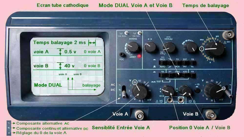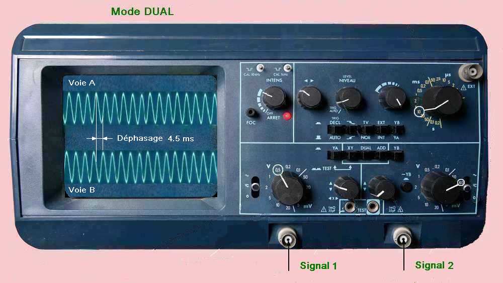 | .Oscilloscope double voie (mesure déphasage entre deux signaux) |