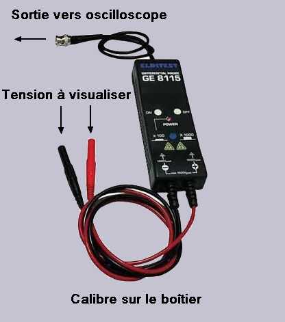 Cette sonde peut être intégrée dans l'oscilloscope, la référence voie devient l'équivalent de la masse