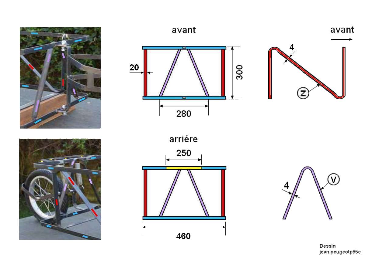 Cette documentation me permet de réaliser le dessin de la remorque, ne disposant pas de cintreuse, j'utilise du méplat ( 20 * 4 )