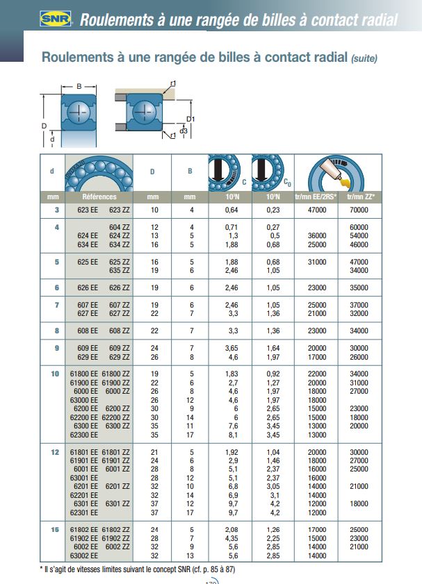 Dimensions Roulements (à partir de la page 170) |