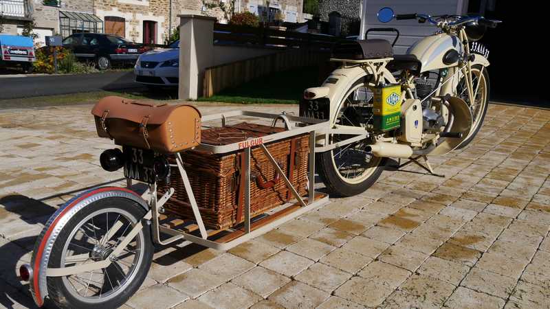 La panière osier resoit une batterie 12v pour alimenter le phare rouge ou le klaxon via une télécommande sur le guidon |