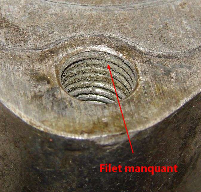 Un couple de serrage trop fort peut donner un "arrachement" du filet dans le cylindre |